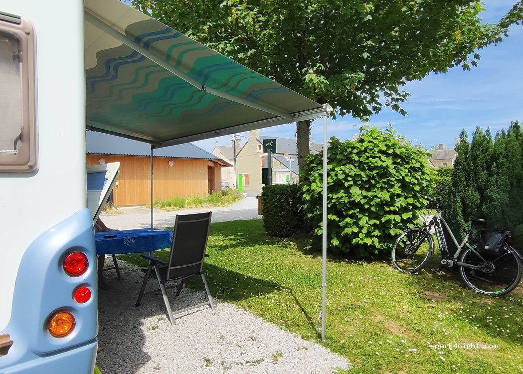 The very best Camping Car spot on our entire three week trip touring the western coast of France. Only 30 minutes from Cherbourg ferry port. Toilet, showers and dish washing area is accessed by code provided by Camping Car. Had trouble accessing the code when I first arrived but the telephone support from Camping Car was excellent. The site is well maintained by the locals. Thank you.