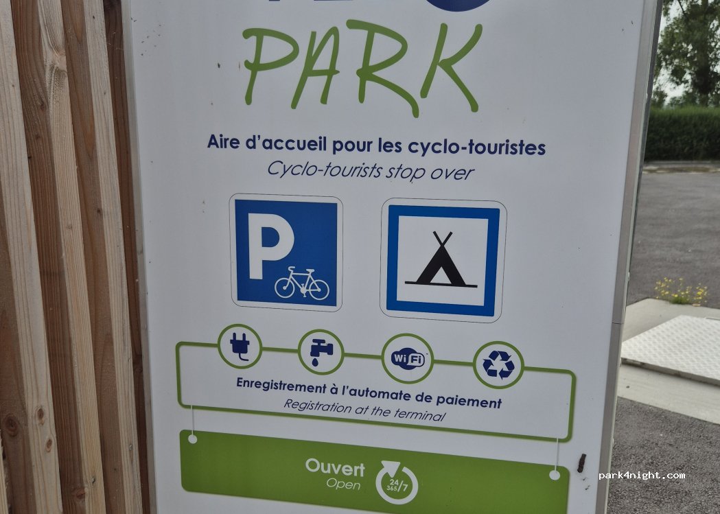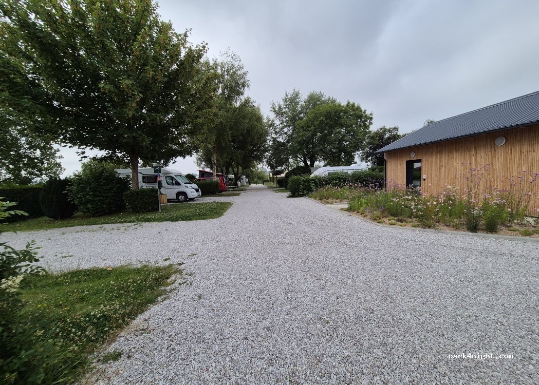 Enfin une aire Camping-car Park non négligée ! Grands emplacements plats sur gravier et herbe bien délimités par des haies entretenues, tous services fonctionnels et sanitaires très propres. Plus plans de chemins de randonnées. Bravo !
