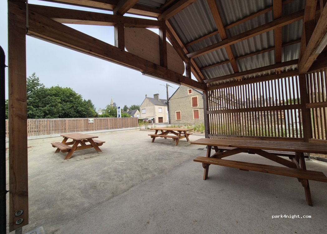 très bel aire , tout est neuf , sanitaires propres , emplacement bien délimité, gravillons ,herbes. nous devions y rester une nuit et sommes rester 2 jours .merci à la commune de nous recevoir si bien . nous y reviendrons avec plaisir