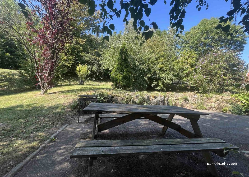 Emplacements privés comprenant salon de jardin et barbecue. Idéal pour camping-car, van, fourgon aménagé…