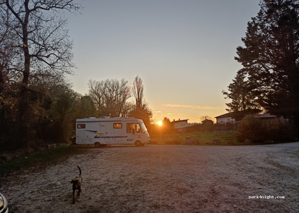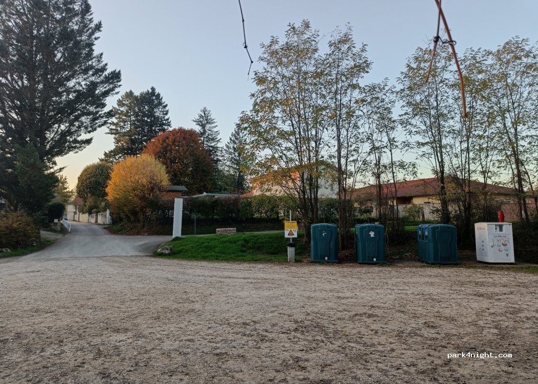 Parking in a residential area, quiet next to a lawn with benches on the banks of the river. There are no public toilets nearby. A quiet and discreet place to spend the night and rest on the river.