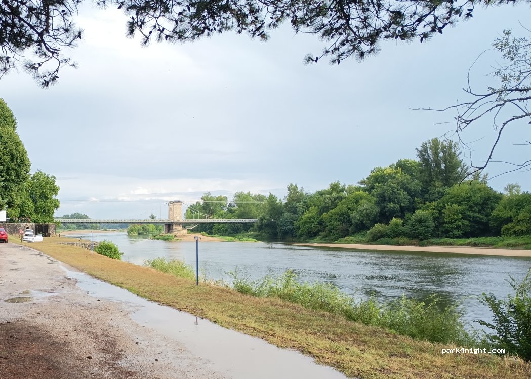 Superbe endroit. face à la Loire. super accueil. grand emplacement. prise d'eau sur les bornes électriques. ATTENTION Suite aux travaux sur le pont. il faut suivre malgré cela cette direction comme indiqué par le message précédent et passer à gauche de la barre préventive pour accéder au camping juste avant le pont