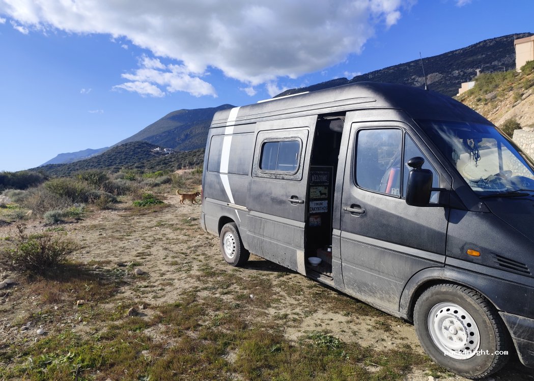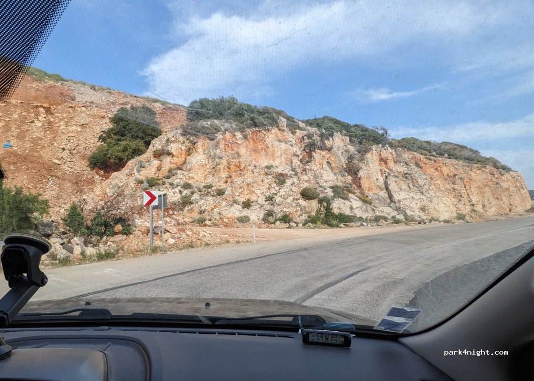 Lateral carretera. Desagradable por el ruido de tráfico, pero muy amplio y te despiertas con sombra. Tienes una bonita cala para darte un baño al despertar