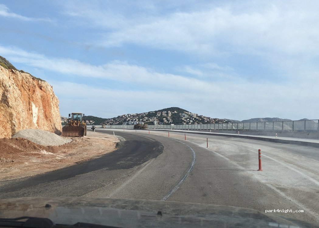 Side road. Unpleasant due to traffic noise, but very spacious and you wake up in the shade. You have a nice cove to take a dip when you wake up.