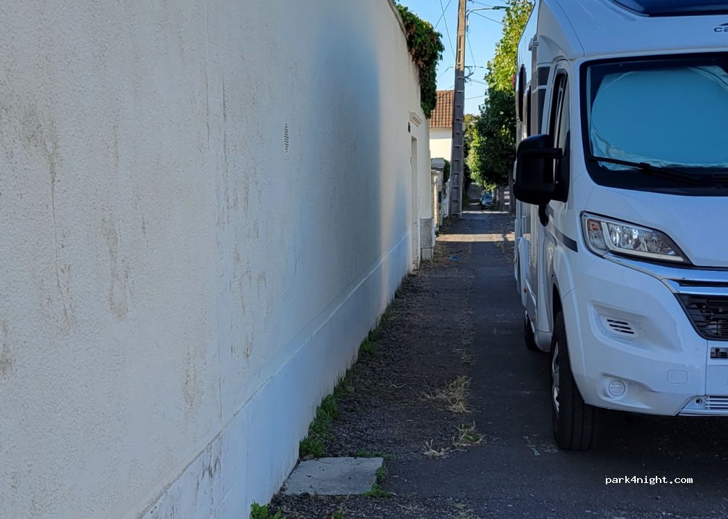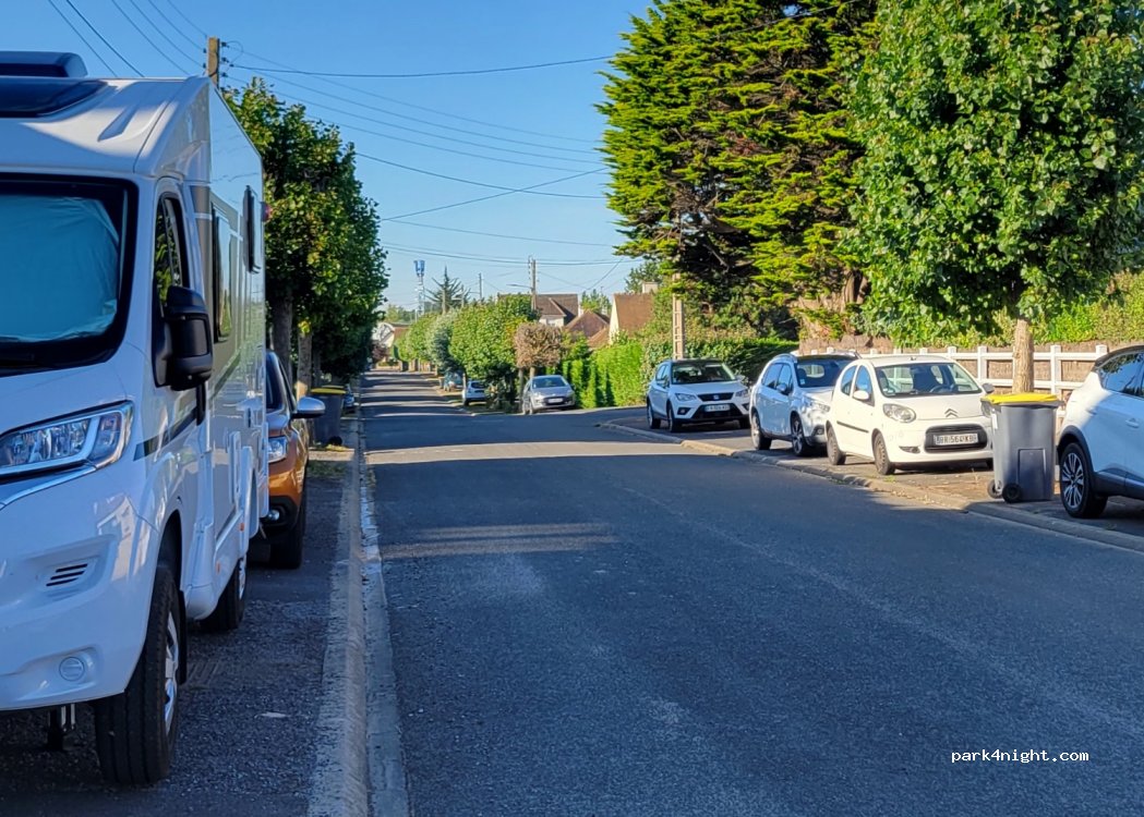 Avenida Pierre Corneille. Aparcamiento gratuito en la acera. Para autocaravanas o furgonetas estrechas para no obstaculizar el paso de los peatones. Prohibido el paso de automóviles durante la semana. Playa a 100m. Papeleras a nivel de playa.