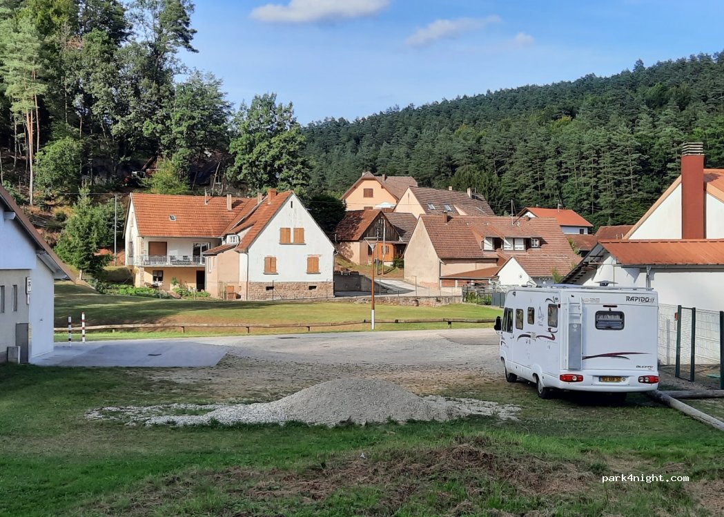 Nous avons passé la nuit sur cette aire. Super aménagement avec stationnement plat et stabilisé. Ruisseau en bordure, vidage eau grise et noire gratuite, robinet d’eau potable. Dans le mur à disposition gratuitement. Que demander de plus. Merci à la commune.