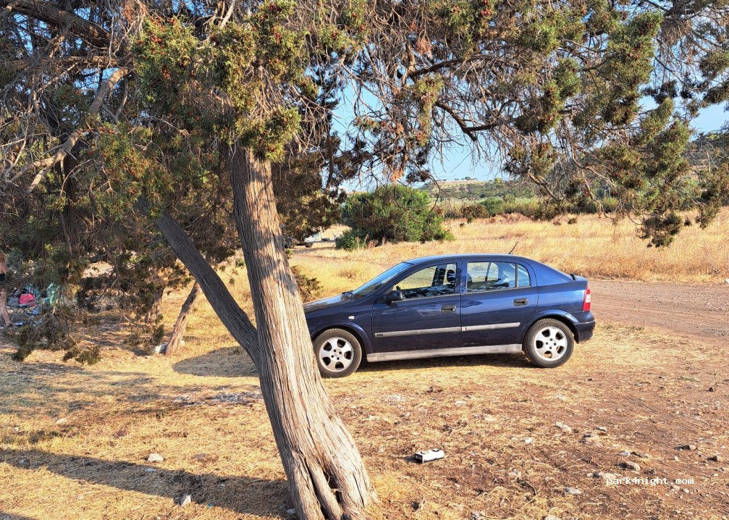 Parking directly on the sea, small narrow beach, perfect swimming spot, a few trees provided for shade, no apparent prohibition on staying there overnight