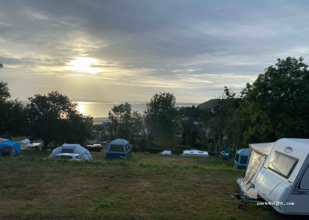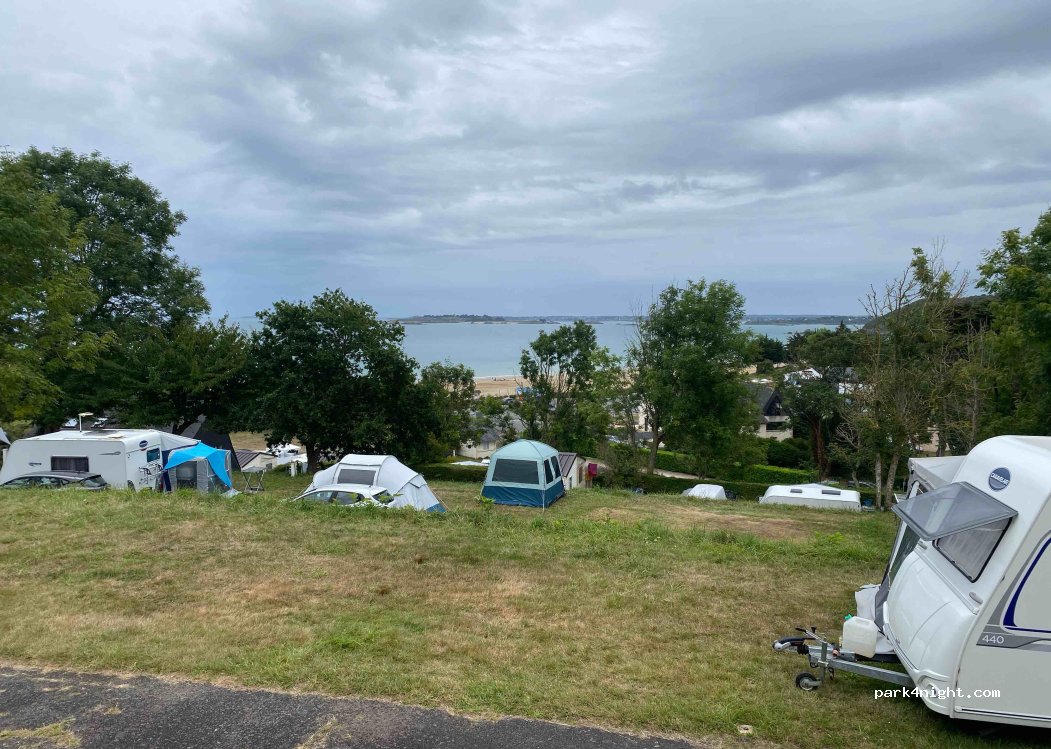 Terassierter Campingplatz am Hang mit Blick auf den nahe gelegenen Strand im Osten. Dazwischen liegt lediglich eine - etwas hörbare - Straße. Der Ort Saint-Cast-le-Guildo liegt fußläufig. Der Platz wird von der GCU Association betrieben, wobei Urlauber den Platz mitbetreiben. Nichtsdestotrotz sind auch Nicht-Mitglieder willkommen. Preis gilt für Nichtmitglieder (inkl. Fahrzeug und Fahrer, weitere Erwachsene zzgl 8,48€)