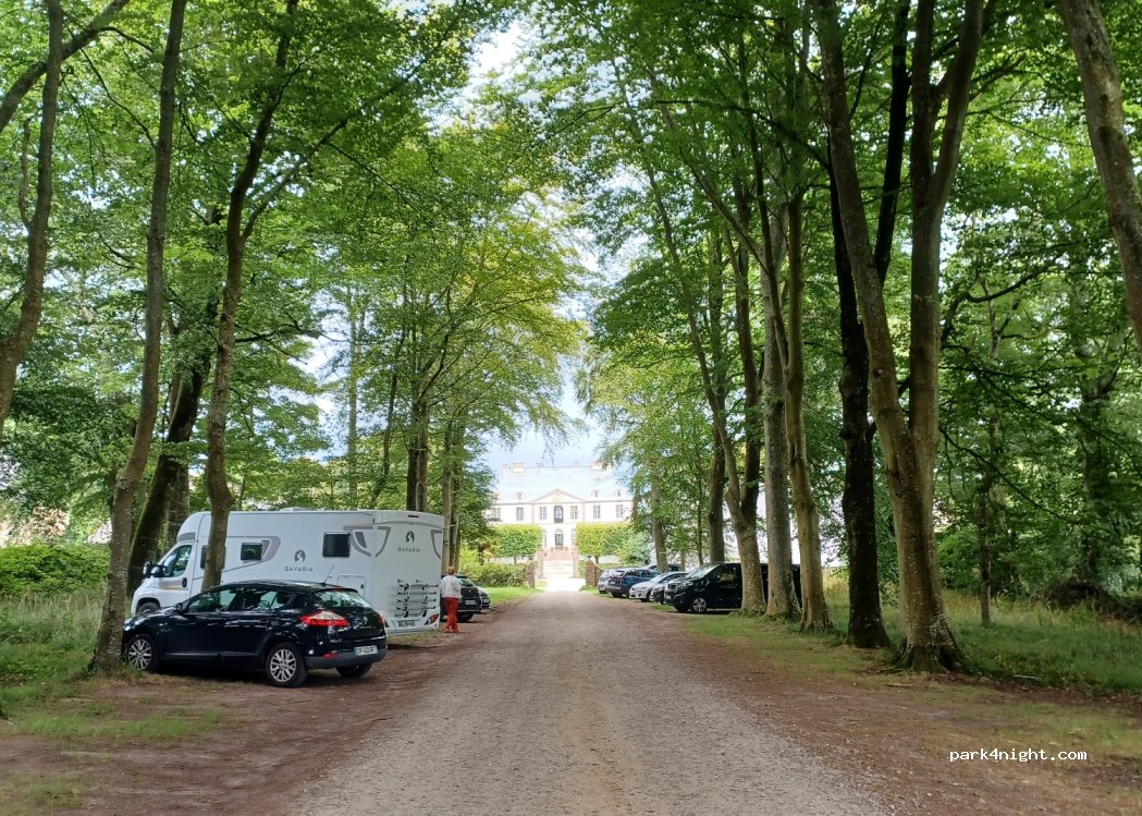 Juste pour indiquer que les CC peuvent se garer facilement pour la visite du parc du château de Carneville