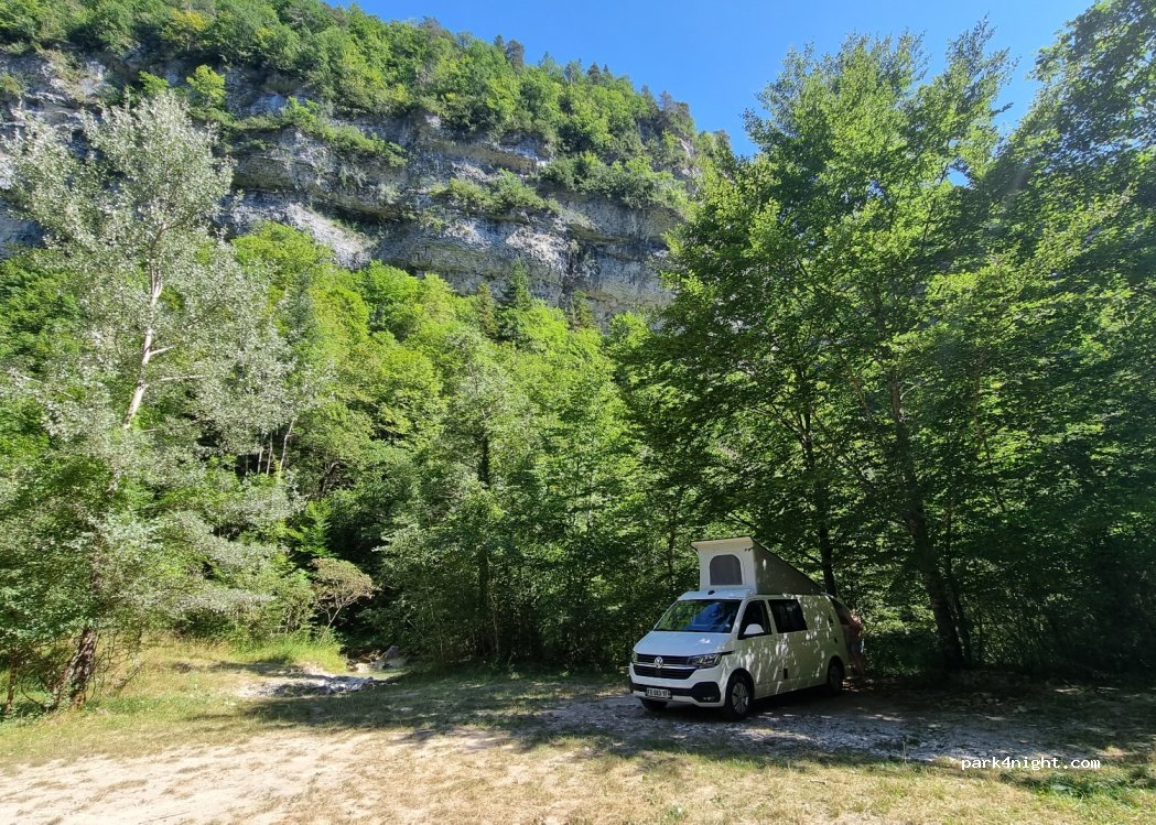Espace plat pouvant servir de parking pour les départs de balades. En bord de rivière avec possibilité de faire trampette. L'eau est plus que fraîche. Attention à l'entrée du spot accidentée et en pente, n'autorise que l'entrée dans un seul sens.