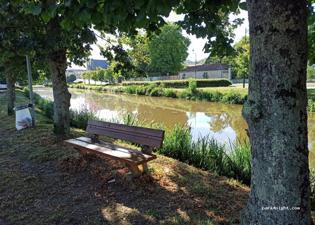 Le long du canal, tres ombragé. Nuit tres calme mais la circulation reprend tôt et fini tard.