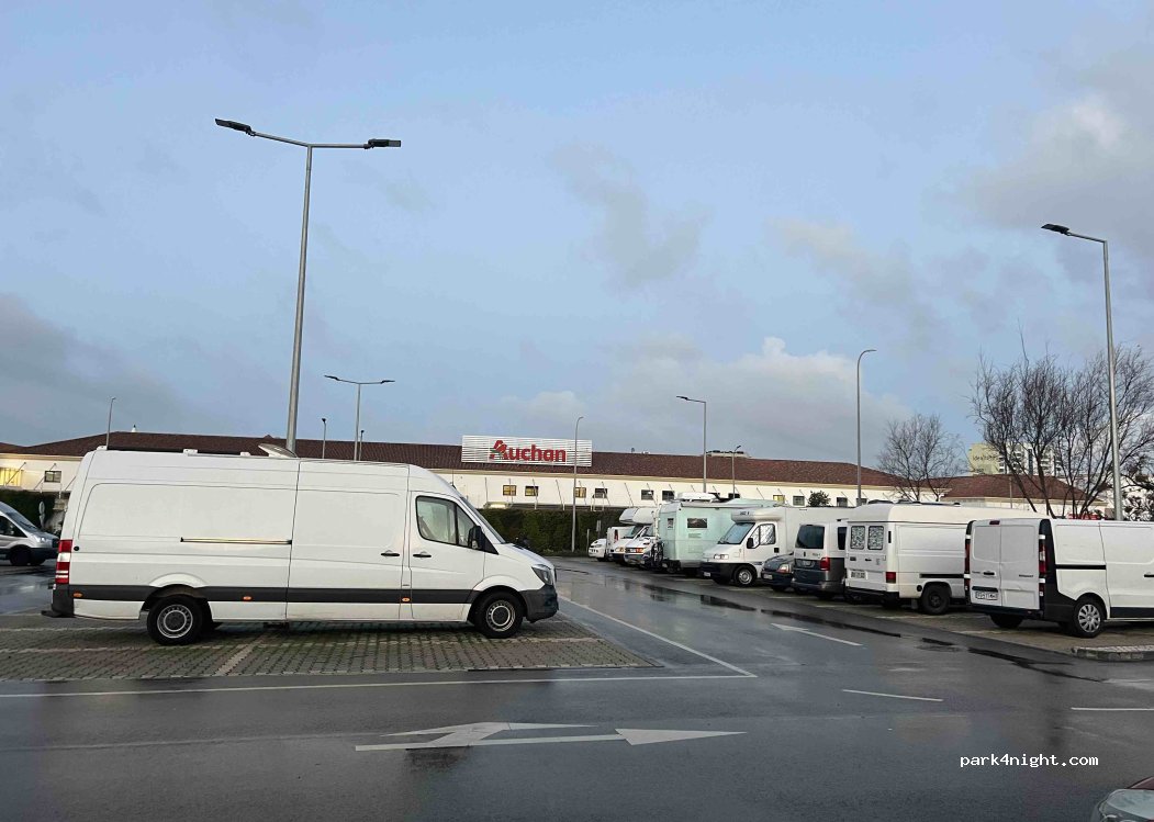 Parfait pour passer une nuit, très calme une fois les magasins fermés, le sol est assez de niveau, il y a Lidl, Décathlon et le centre commercial juste à côté, sur le parking il y a même la possibilité de faire une machine de linge.