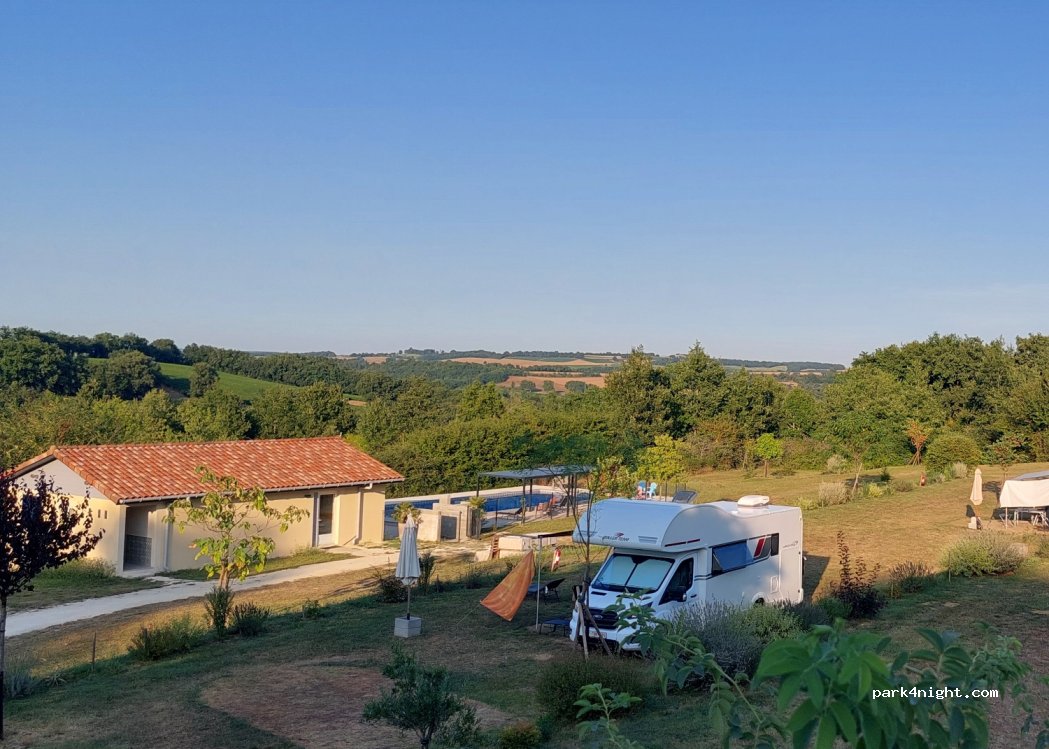 Wat een heerlijke rustige kampeerplek midden tussen de druivenvelden in de Gers. Ontzettend warm welkom van de Nederlandse eigenaren met een drankje. Rustig gelegen, kindvrije, camping. Perfect verzorgd sanitairgebouw, met eventueel prive sanitair. Net zwembad op het terrein, grote plekken en broodservice aanwezig. Qua prijs/kwaliteit hartstikke goede plek.