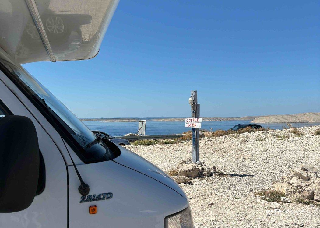 Tómate un descanso y disfruta de la hermosa vista con una bebida fría o un buen café. Amplio espacio de estacionamiento. Es fácil estacionar una autocaravana, incluso las grandes.