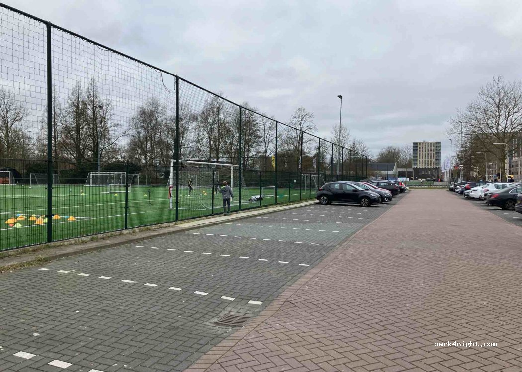 Parkeerplaats voor sportfaciliteiten, vlakbij lidl, 's nachts rustig.