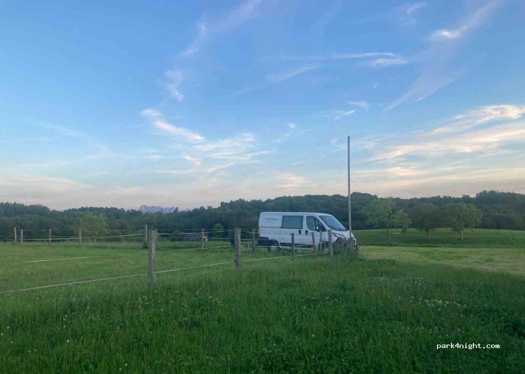 Schöner Stellplatz mit toller Aussicht bei freundlicher Bauernfamilie. WC mit Dusche im Haus nebenan. Unkomplizierte Anfahrt und gute Kommunikation (FR & DE).