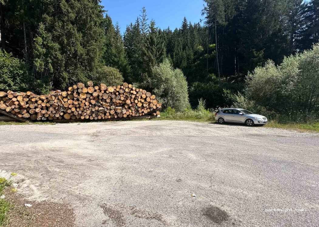 Se trata de una amplia zona que se encuentra al borde de la carretera. También hay un desvío que termina en la esquina y se convierte en un sendero forestal para caminar. Este se puede utilizar para aparcar lejos de la carretera con más privacidad. Toda la zona es llana y los coches se detienen aquí mínimamente.