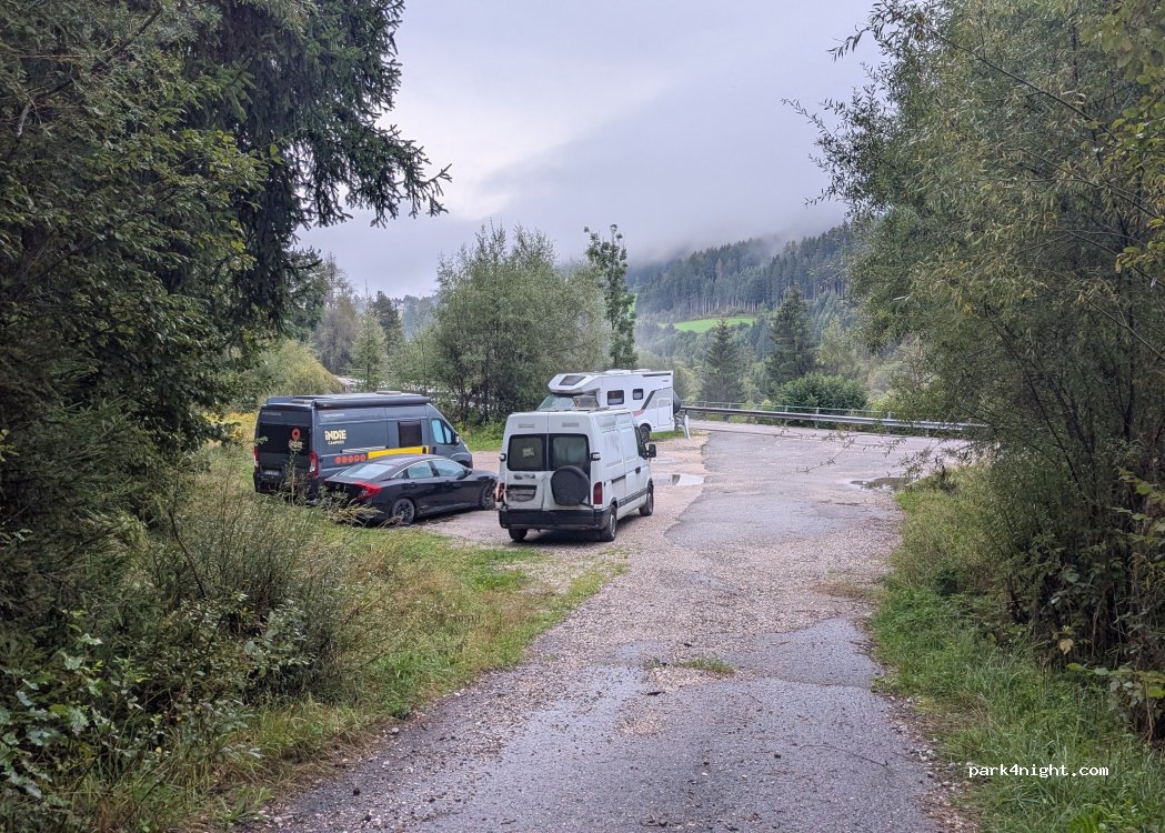 Area più o meno pianeggiante sterrata a bordo strada. Ci siamo fermati qua una notte di passaggio perso il lago di Anterselva. La strada è molto trafficata anche di notte ma come appoggio può andare bene
