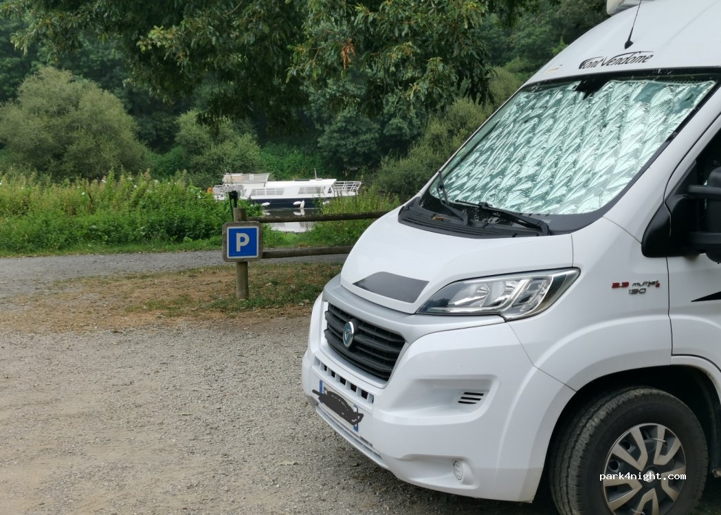 Small car park on the banks of the Vilaine, we spent a quiet night on the towpath nearby. Possibility for 3 vehicles
