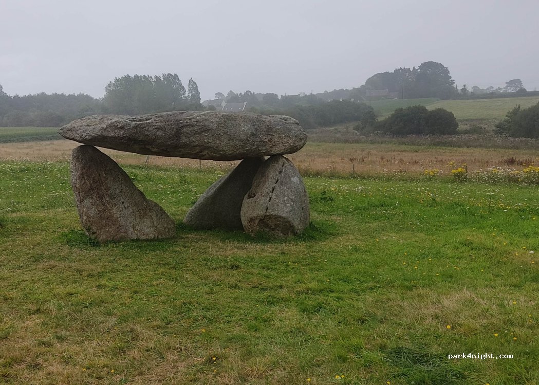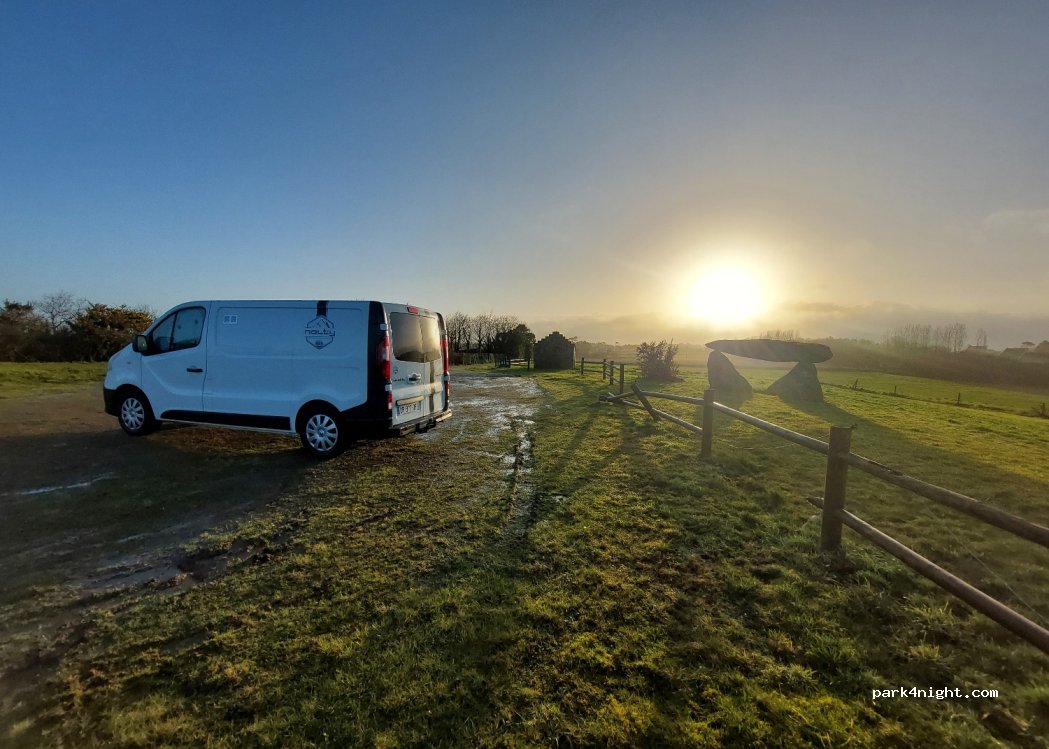 petit spot canon, typiquement breton avec son petit dolmen. plat, propre, juste une éolienne à proximité et pas de poubelle. idéal tout de même.