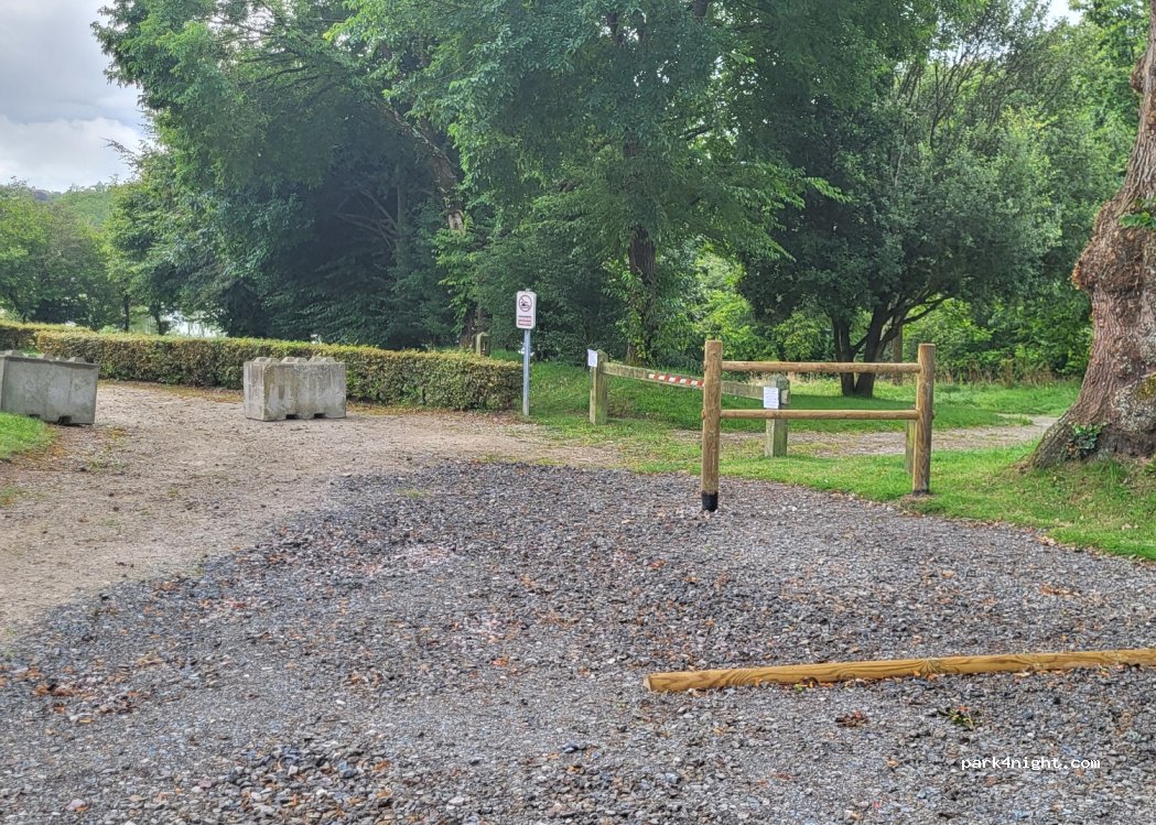 Très belle aire avec des grands emplacements et de l'ombrage. Etang juste à côté parfait pour promener toutou. Proximité de la ville et de son château. Nous étions au fond de l aire et aucunement gêné par la route. Nous y avons passé une excellente nuit. Merci CCP.
