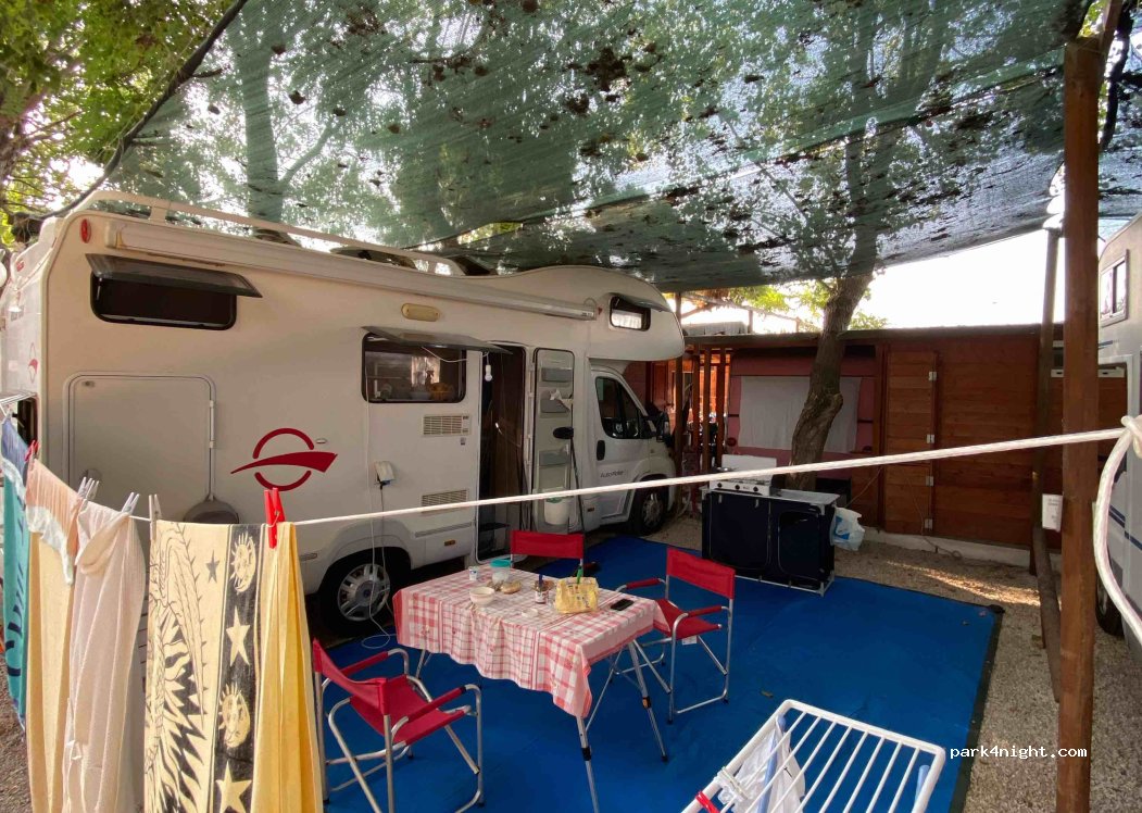 Inspiegabilmente caro, 30€ a persona è eccessivo. Ombreggiato e in alcuni giorni era ventilato. Spiaggia grande a pochi metri ma al mare si è sentito l’odore di acqua dolce del fiume Badino che sfocia a 100 metri. Ottimo il bagno privato associato alla piazzola, scomodo lo scarico delle acque grigie. Docce calde gratis. Animazione con orari un po’ strani, ma poco invadente.