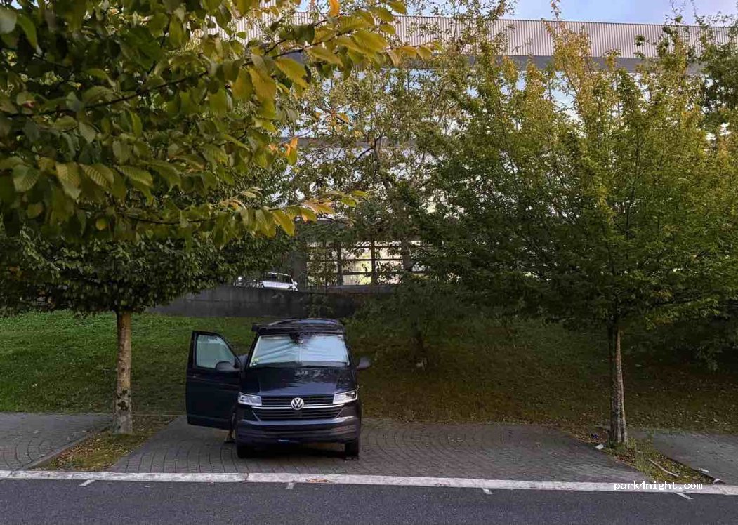 Parking behind the Mikeletegi science park, with shade and wide spaces, very quiet. Ideal for visiting Donostia. Bus to the city center. At the back of the parking lot, area for walks in the heart of nature.