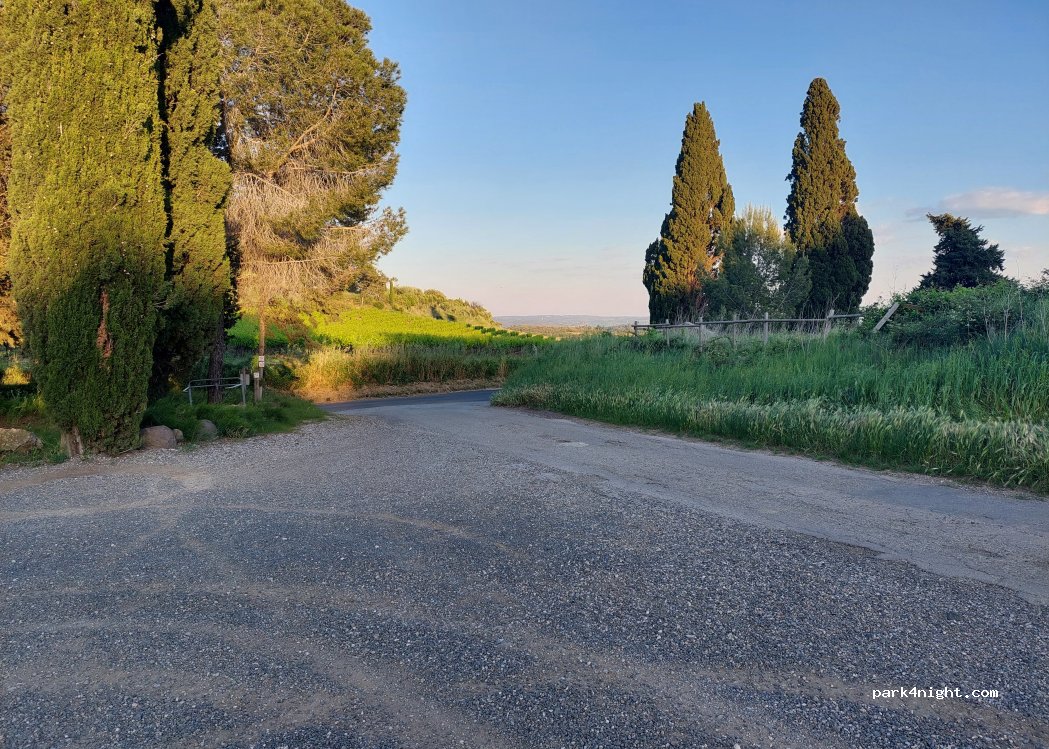 Très grand parking plat au bord d'une route tres peu passante. on a entendu des chiens aboyer toute la nuit. merci les boules quies, indispensable! Coin ombragé sous les pains avec les 2 tables de piques-niques. petits déchets en tout genre au sol, nous avons tenté un ramassage mais il en reste!