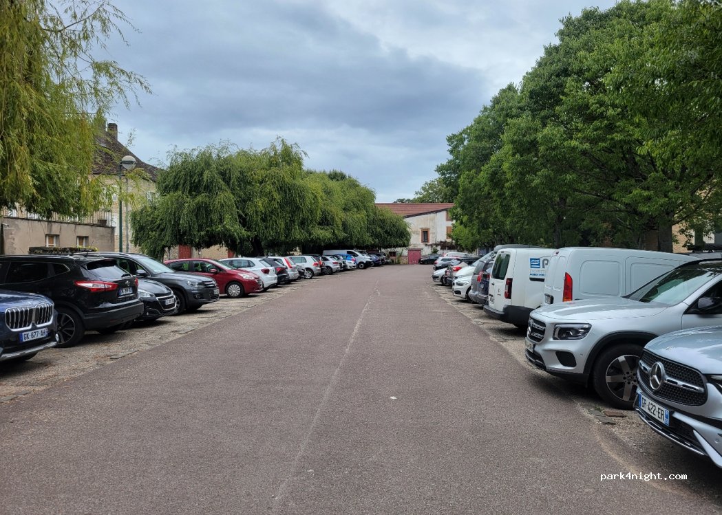 Très bon parking pour visiter le vieux Beaune, Hospices, Collégiale... Pour petits gabarits car places courtes et beaucoup d'arbres avec branches basses. Le notre fait 6m de long et 2,65m de haut et ça passe sans problème. Merci à la commune.