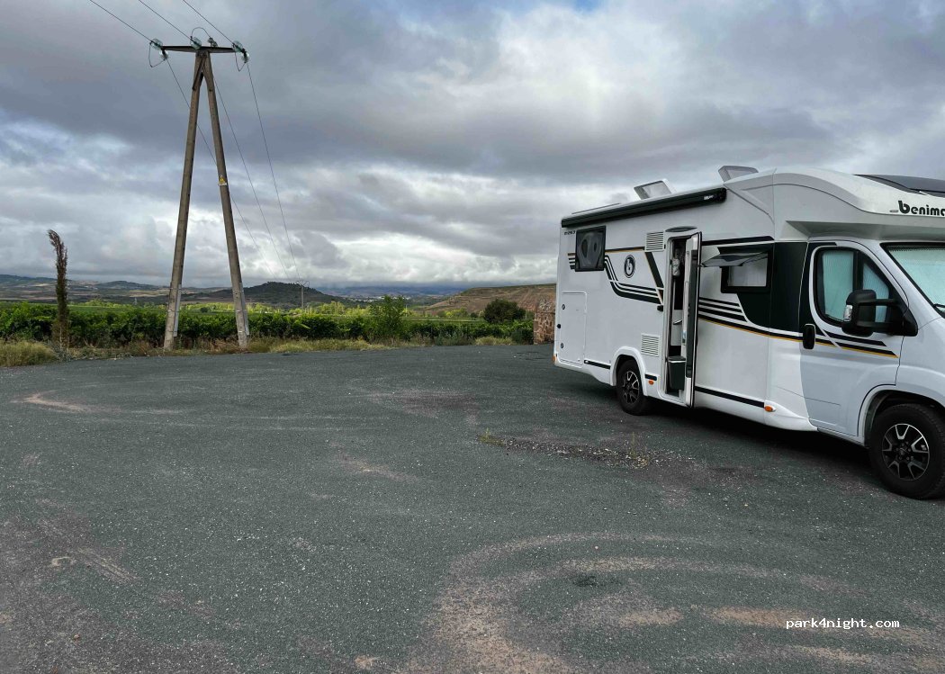 Aparcamiento justo detrás del cementerio del pueblo, totalmente tranquilo y llano, perfecto para dormir con total tranquilidad. Hay algunas mesas de picnic y una barbacoa justo detrás.