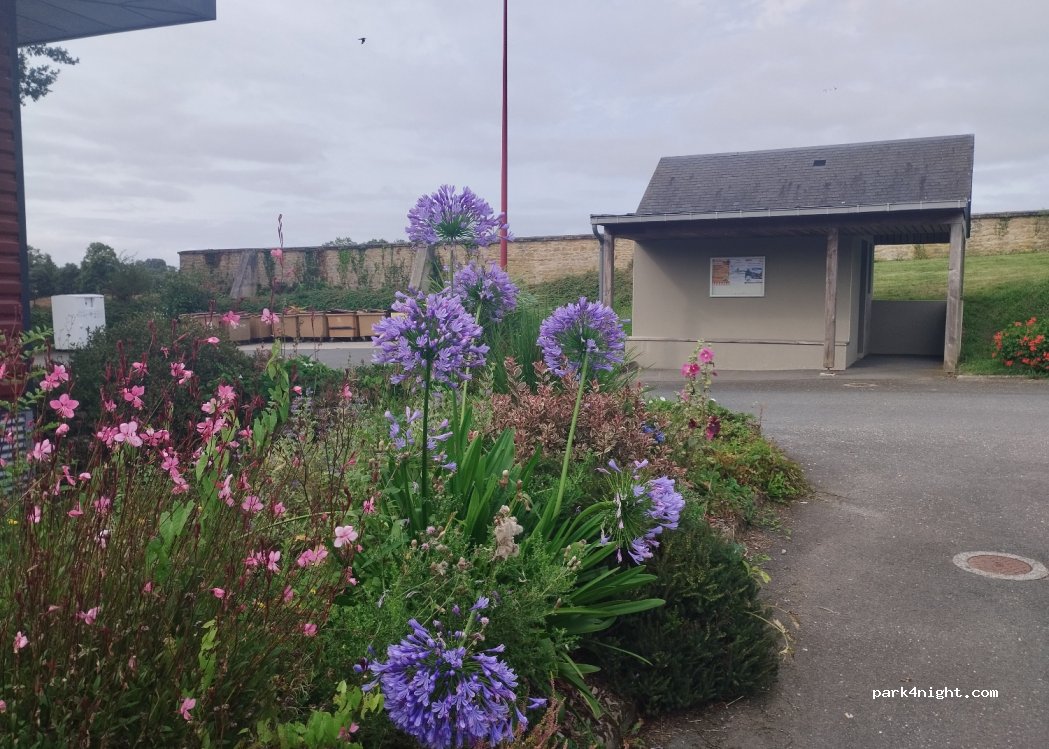 New and free service area at the entrance of Locmalo, near the cemetery. Parking possible at night. Near Guéméné-sur-Scorff and its famous andouille. Many thanks to the municipality.