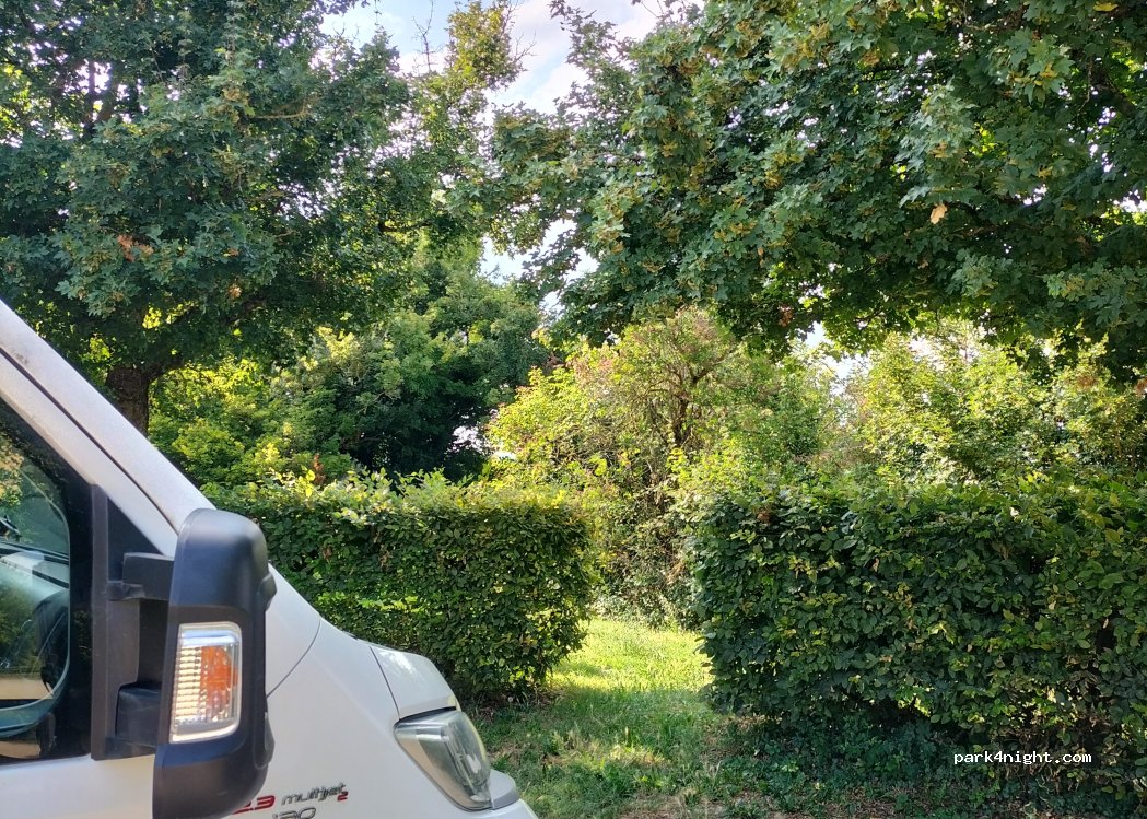 Sehr angenehm ruhiger Platz zum Übernachten. Geschützt durch Hecken, es kommt kaum jemand vorbei, Nacht war ruhig. Mülleimer vorhanden.