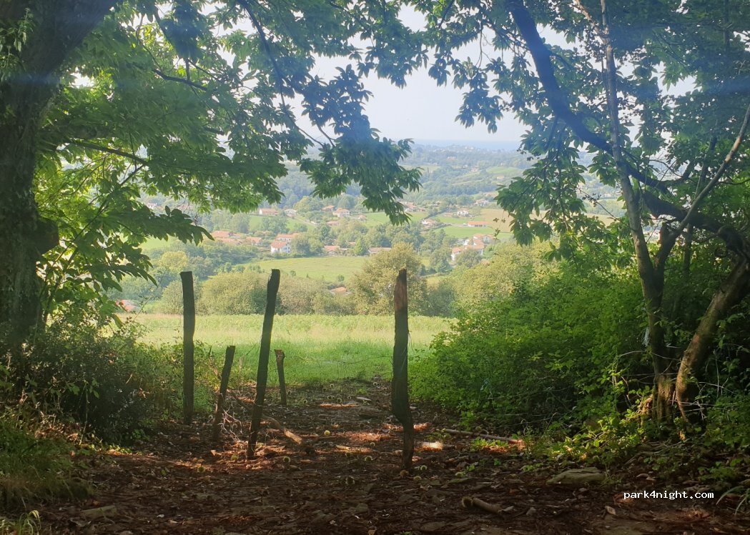 Lieu en pleine nature, au calme, au départ de la randonnée pour aller a la Rhune. Plusieurs emplacements possibles (je dirai 5 a 6). Plat et a l ombre.