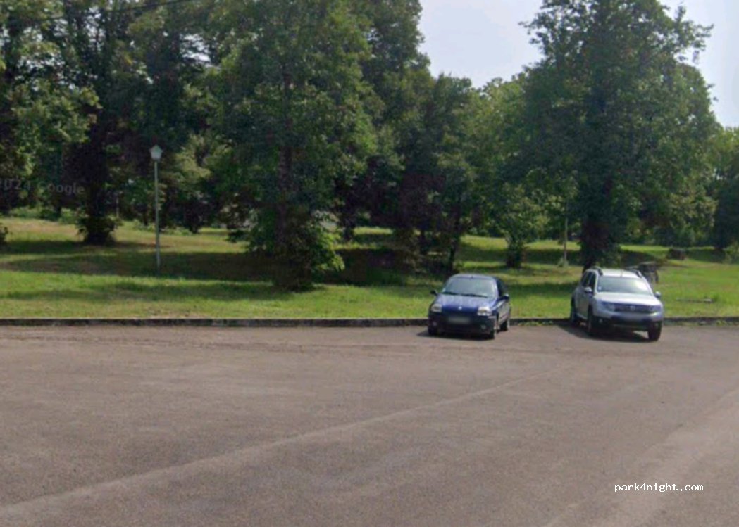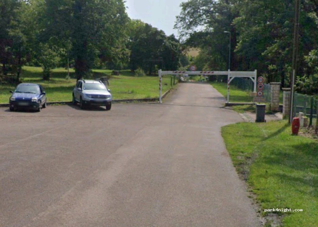 Just before the height barrier, 4 camper vans maximum. Access to the playground, spray park and swimming.