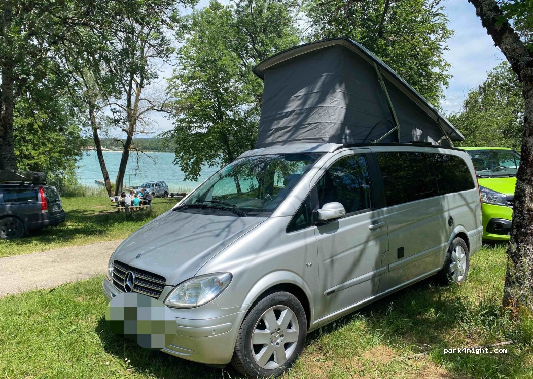 Doucier Beach. Lake parking ideal for snacks and swimming with very clean water. Barrier, limited to 2.20m in high season, also paying in high season. Camping prohibited and parking prohibited at night.