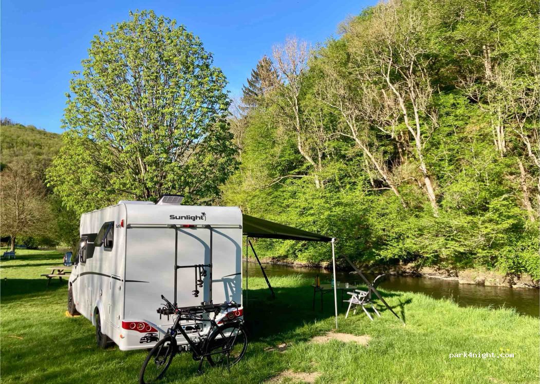 Nice campsite in the valley where many motorcycles come. Reservations can be made via the internet and include electricity. We were with the camper at the stream/river, which is ideal for fishing (trout).