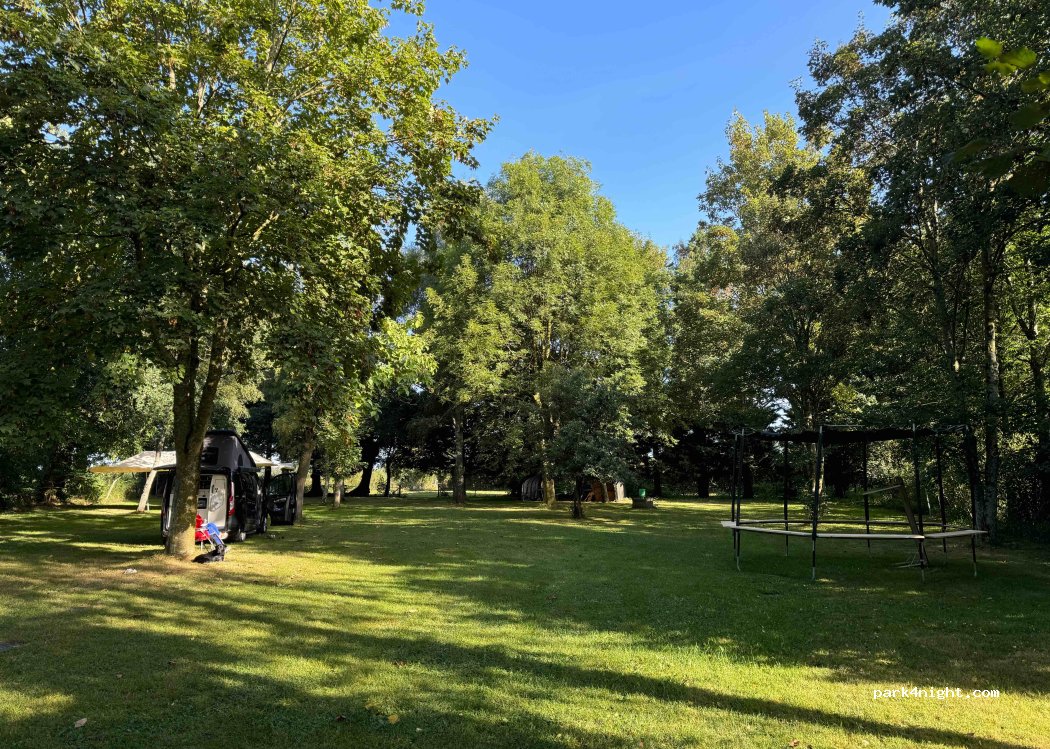 Pequeño y sencillo camping agrícola cerca de una cervecería. Césped rodeado de árboles y por tanto con mucha sombra. Instalaciones sanitarias sencillas pero funcionales y limpias.