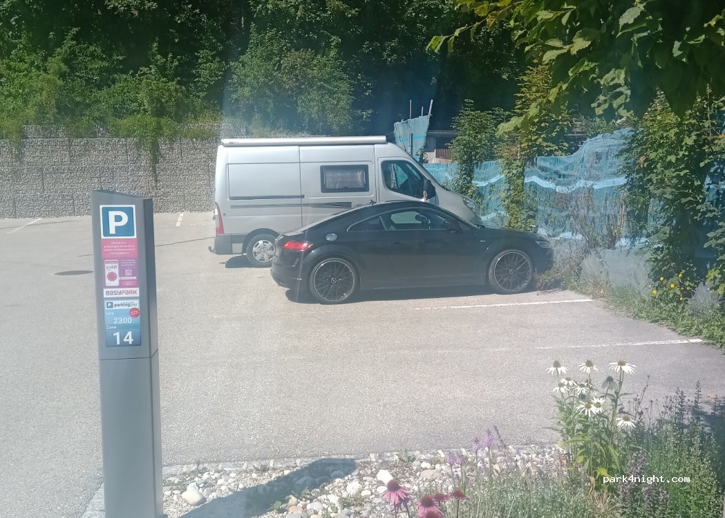 Parkplatz mit 5 Standardstellplätzen ohne Höhenbegrenzung.