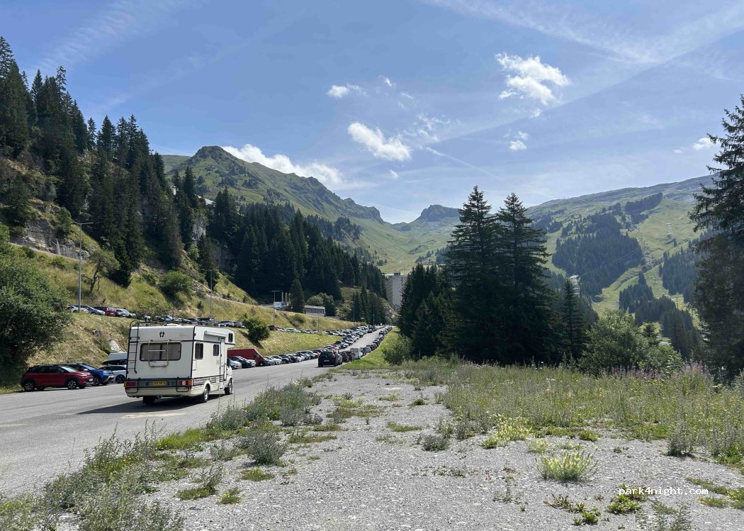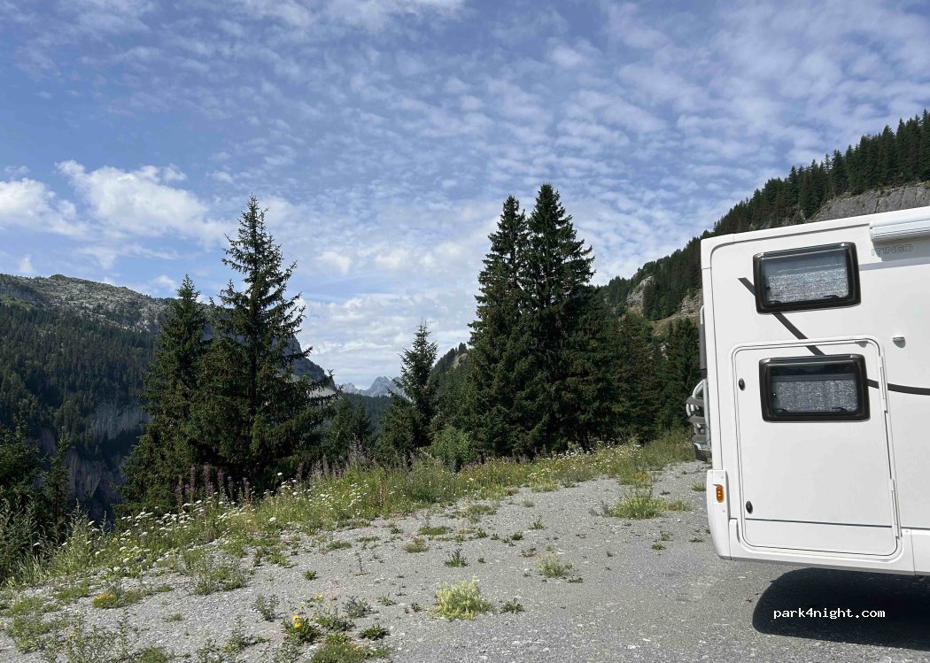 Il y a une endroit un peu plat sur le bout du parking qui est effectivement gratuit l’été. Aucun service mais à moins de 5 min à pieds de flaine forum où vous trouverez des commerces, des toilettes et des départs de rando . Merci à la station de ne pas nous mettre dehors !