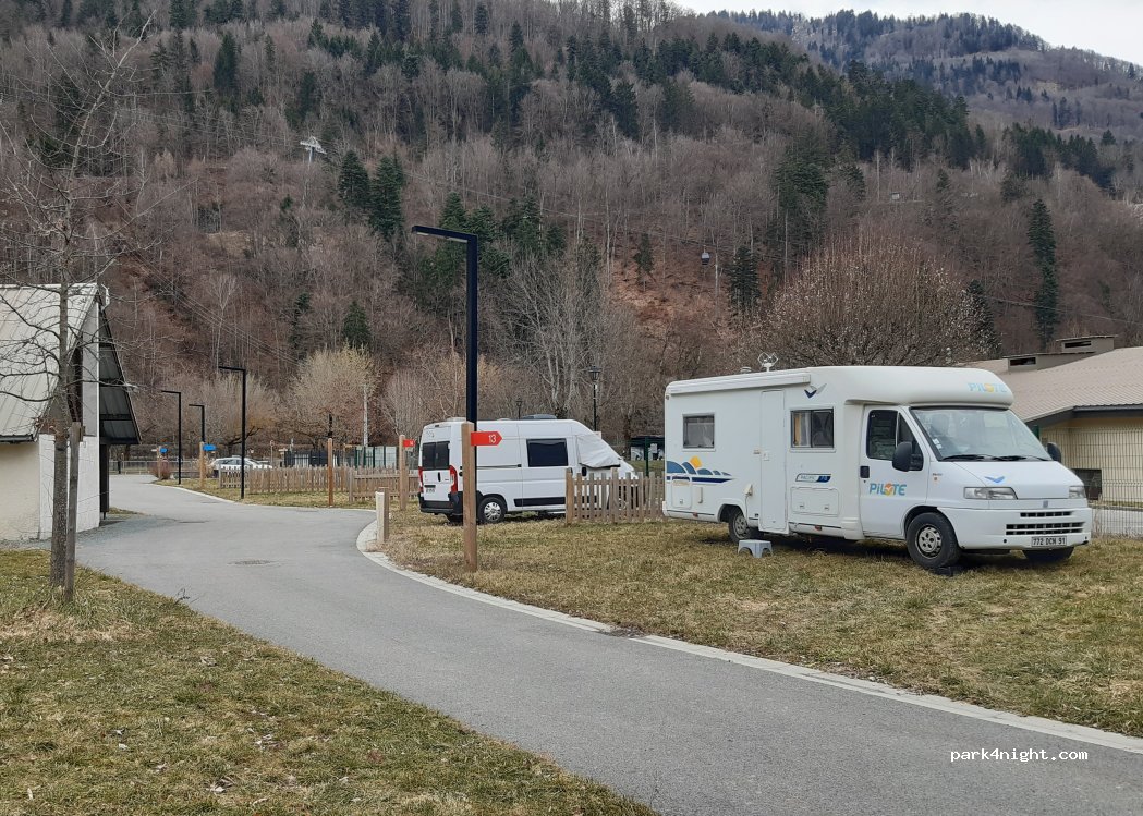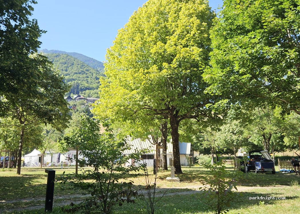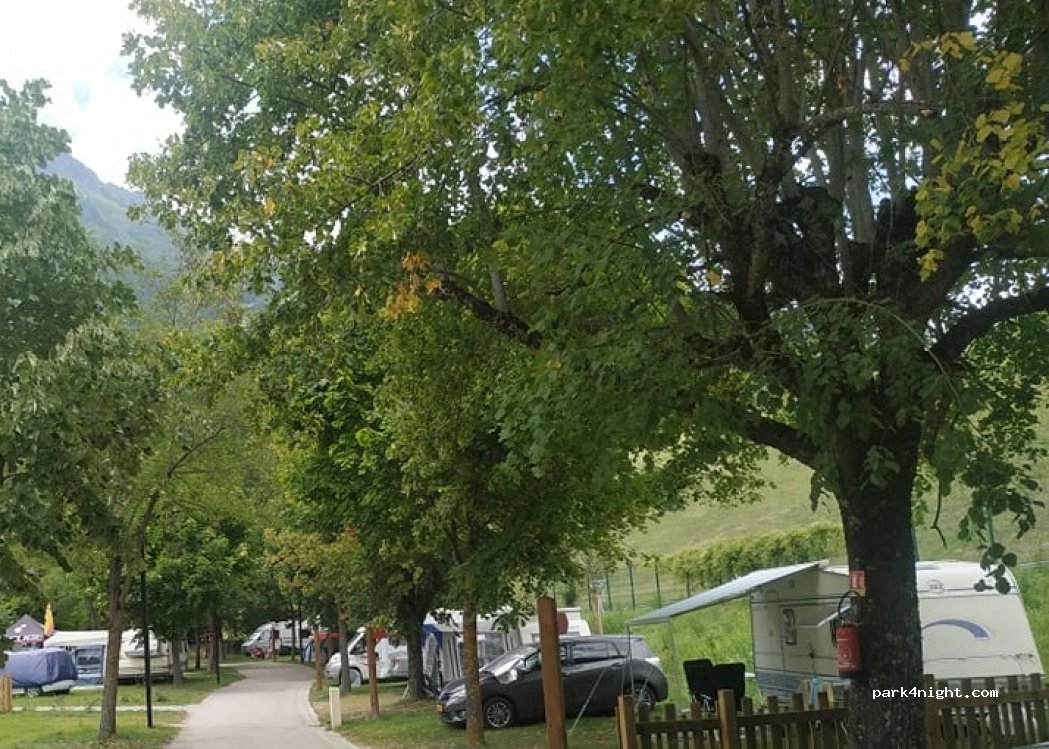 Friendly hosts, very quiet site. Road nearby not noisy when I visited in June. Shady, huge, flat pitches available with electricity on all. Great clean facilities, shower, campervan services. Access to Alpe d’Huez resort by cable car which is 2mins walk away. Would stay again.