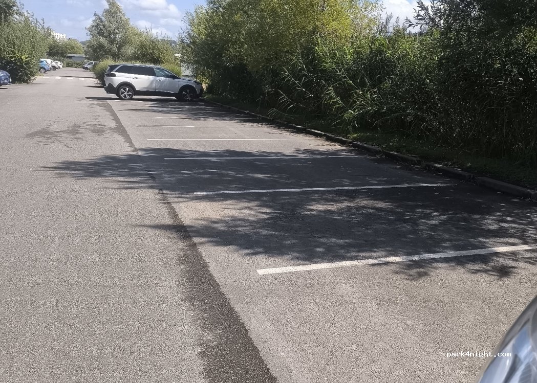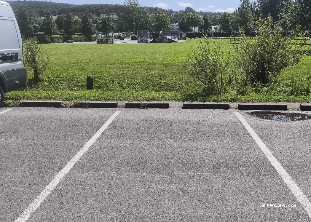 In a 6.5 unit we were able to reverse into the space and overhang on to the field, these are the bays on the right. You wouldn’t be able to overhang the other side due to hedges. Lovely 10 min walk along the river into the centre where there are plenty of restaurants.
