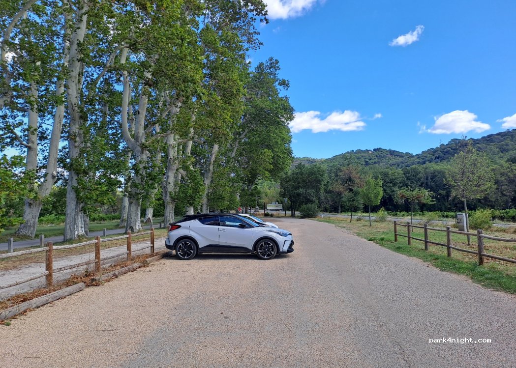 Un bon spot pour la nuit, en arrivant vous avez sur la droite un parking limité à 2.2m à proximité de vignes et sous de grands platanes. Sur la gauche, il n'y a pas pas de limite de hauteur et beaucoup d'espace mais le parking est tout proche de la route. Le village a un charme fou et la ballade autour est sympa.