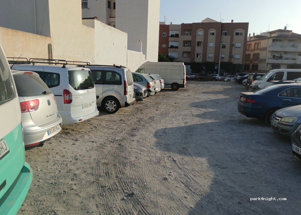 En Invierno, no está mal, pero en verano está llenísimo de coches. Tiene poco espacio para maniobrar, he visto alguna autocaravana pasándolo realmente mal. El descampado es céntrico. Los lugareños suelen llevar allí a los perretes a hacer necesidades.
