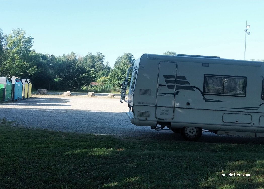 hele grote parking,, stonden aan de rand, heel rustig.. vlak bij centrum ..fietsen naar kanaal..bij ons was de toegang (2.20 meter) open