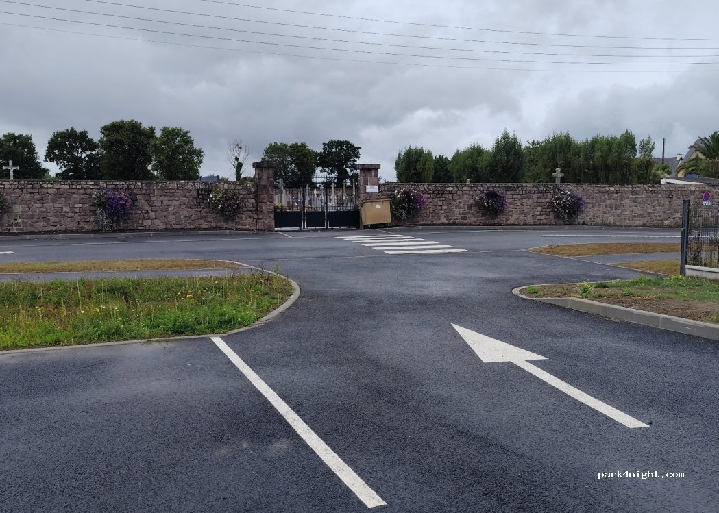 parking sans service comme indiqué sauf une benne à verre, en face d'un cimetière et d'un parc à jeux, skatepark. Calme en ce WE, nous étions les seuls. Le parking sans limite de hauteur est juste après celui du complexe sportif qui a une barrière de 2,10m