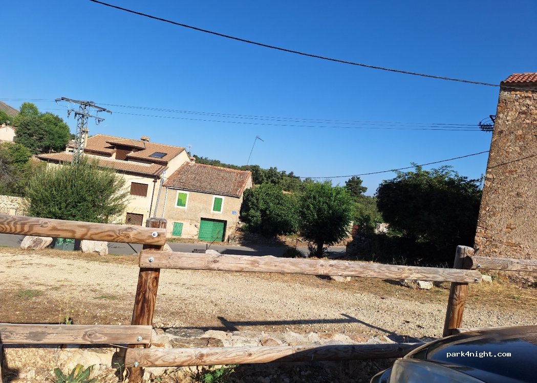 Parking with a slight slope on the outskirts of the village, natural pools a minute away with a kiosk and fountain nearby. Quiet and cool place, we have spent two days without any problem. No need to take out chairs, tables or cook.