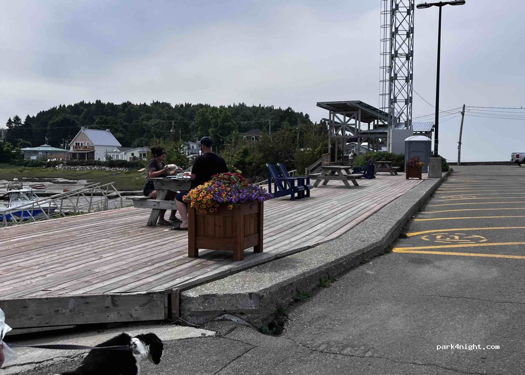 Endroit sympathique sur le quai de la ville de Trois-Pistoles. À NOTER: Il faut maintenant réserver et payer d'avance le 25$ sûr le site internet de la ville de Trois-Pistoles. Un code qr est disponible sur le site même au quai.