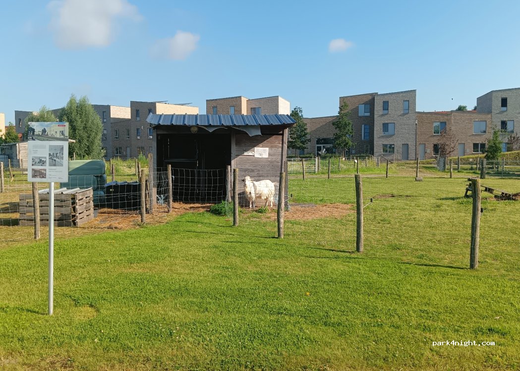 In the Zuikerpark. It is a former sugar factory transformed into a public park with enclosures with farmyard animals. It is a 15-minute walk from the city center