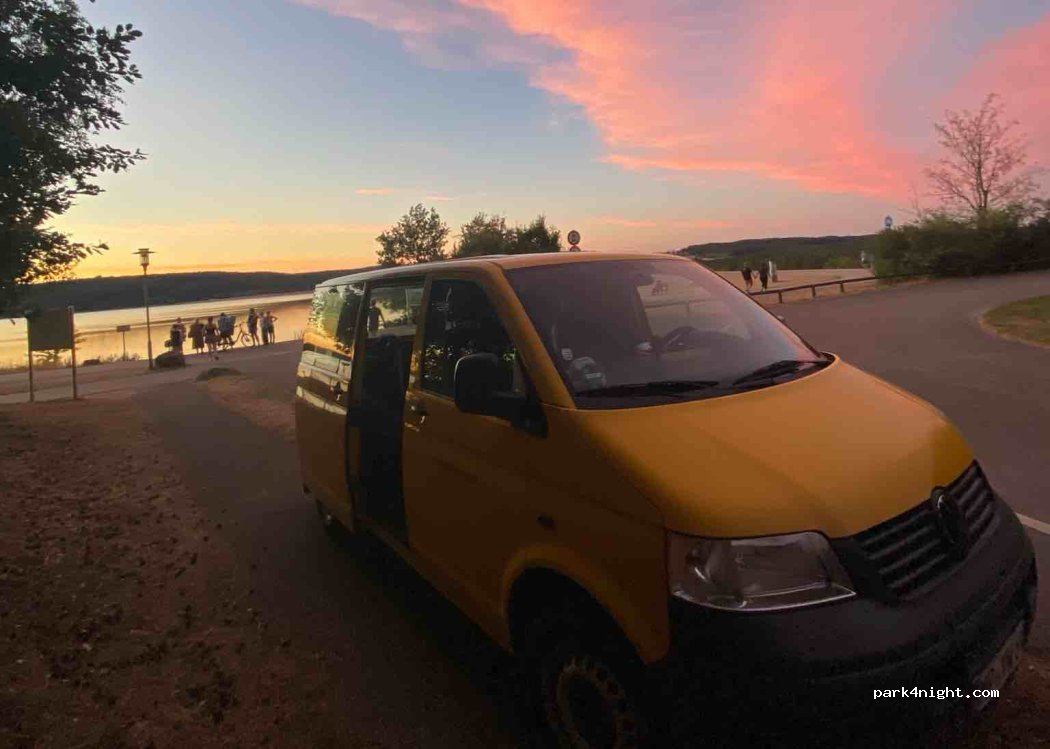 Wir standen 2022 für eine Nacht dort. Nachts kein Verkehr jedoch 1-2 Leute die noch unterwegs sind. Für eine Nacht vollkommen ok. Sehr schöner See