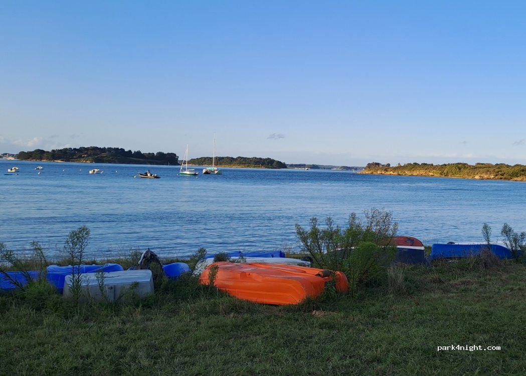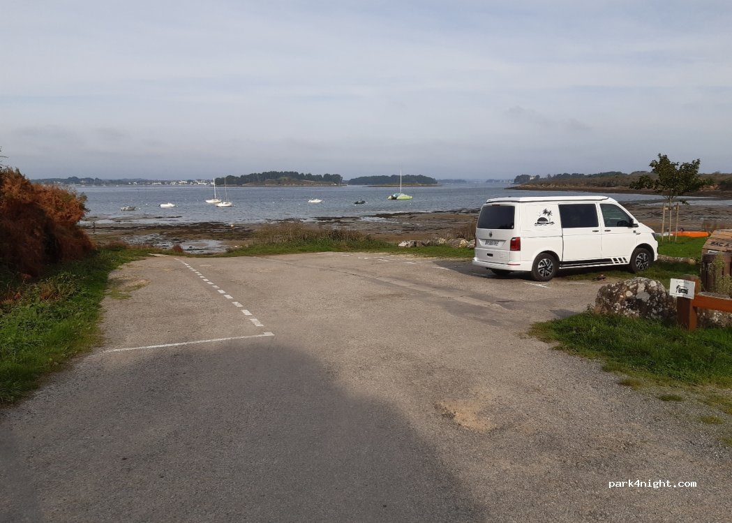 Accès au bout d'un chemin ! Petit parking fréquenté par des pêcheurs à pieds. Emplacement très agréable, et même en basse saison, car pas d'arbre pour cacher le soleil d'hiver !